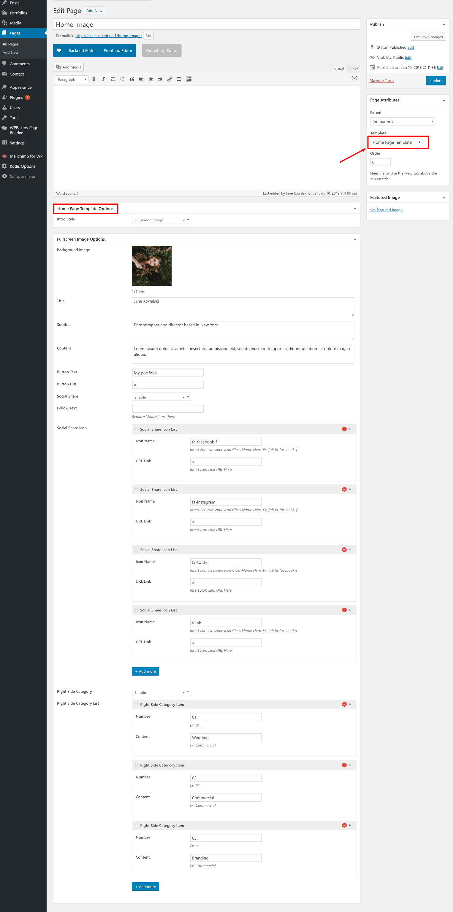 Select Frontpage Page
