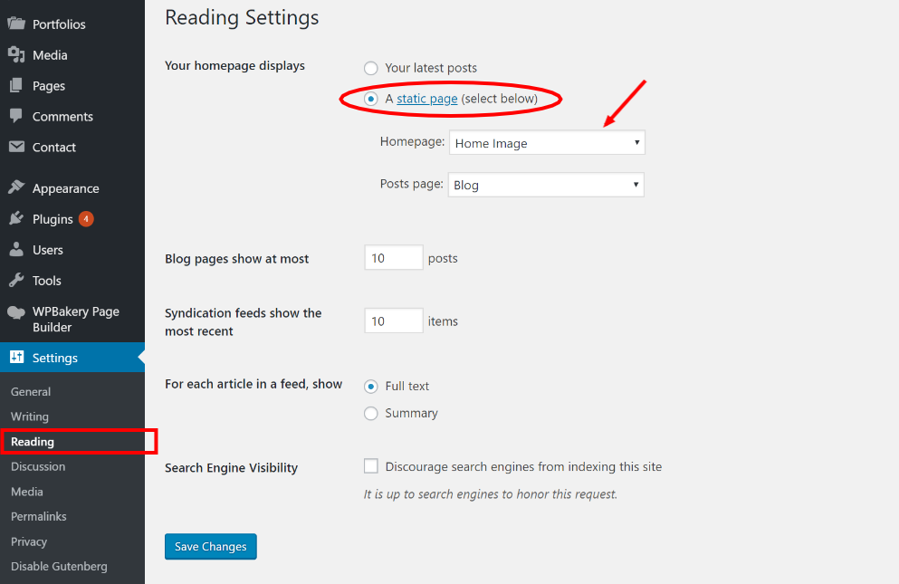 Setting The Front Page